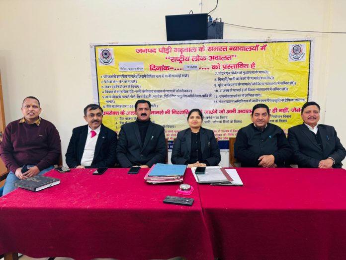 श्रीनगर गढ़वाल। आज़ दिनांक 13 दिसंबर 2025 को विधिक सेवा प्राधिकरण नैनीताल के निर्देशानुसार एवं जिला जज/अध्यक्ष जिला विधिक सेवा प्राधिकरण पौड़ी गढ़वाल के आदेशानुसार बाह्य न्यायालय श्रीनगर में राष्ट्रीय लोक अदालत का आयोजन किया गया एवं बाह्य न्यायालय श्रीनगर में राष्ट्रीय लोक अदालत पीठ की अध्यक्षता सिविल जज/न्यायिक मजिस्ट्रेट (प्रथम श्रेणी) कु.अलका द्वारा की गई जिसमें सदस्य विद्वान अधिवक्ता बलवीर सिंह रौतेला रहे।बाह्य न्यायालय श्रीनगर द्वारा कुल 215मामलों का निस्तारण किया गया जिसमें-209फौजदारी वाद,4