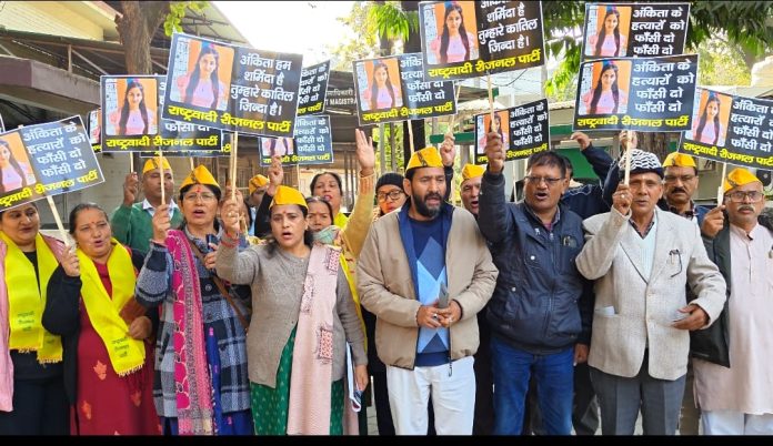 देहरादून, 27 दिसंबर 2025: उत्तराखंड के बहुचर्चित अंकिता भंडारी हत्याकांड में हाल ही में सामने आए नए खुलासों और वायरल ऑडियो-वीडियो के मद्देनजर राष्ट्रवादी रीजनल पार्टी ने मामले की सीबीआई जांच तथा एसआईटी जांच को दोबारा शुरू करने की मांग को और तेज कर दिया है। पार्टी की प्रदेश अध्यक्ष सुलोचना ईष्टवाल के नेतृत्व में कार्यकर्ताओं ने आज जिलाधिकारी कार्यालय के समक्ष जोरदार प्रदर्शन किया और नारेबाजी की।