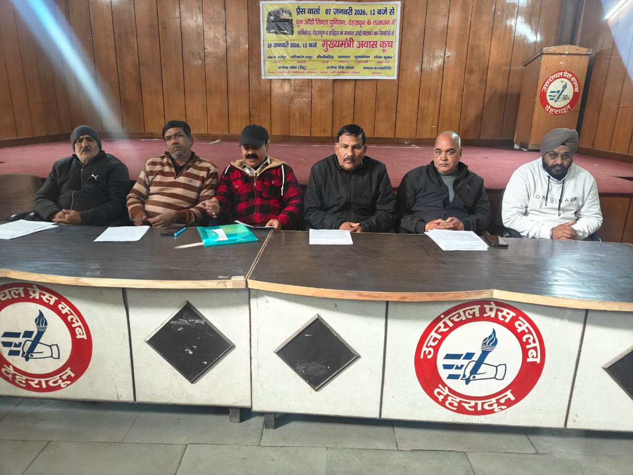 देहरादून, 7 जनवरी 2026: दून ऑटो रिक्शा यूनियन ने आज प्रेस क्लब में आयोजित प्रेस कॉन्फ्रेंस में पारंपरिक ऑटो रिक्शा चालकों की समस्याओं को प्रमुखता से उठाया। यूनियन ने इलेक्ट्रिक, बैटरी और सोलर रिक्शा के साथ-साथ फिटनेस सेंटरों की मनमानी पर गंभीर आरोप लगाते हुए सरकार से तत्काल हस्तक्षेप की मांग की है। यदि मांगें पूरी नहीं हुईं, तो यूनियन ने 20 जनवरी को देहरादून, ऋषिकेश, हरिद्वार के चालकों को एकत्रित कर मुख्यमंत्री आवास की ओर कूच करने की घोषणा की है।