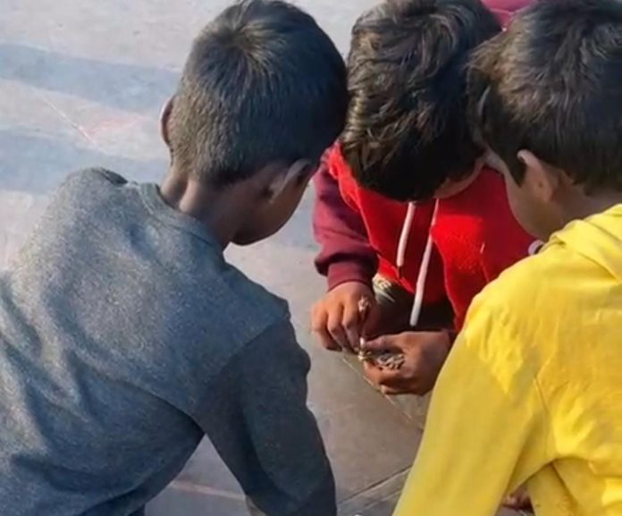 इसी पवित्र स्थल के निकट, वीडियो में **तीन नाबालिग बच्चे** कथित रूप से **सिक्का उछालकर (हेड-टेल)** के माध्यम से **छोटी राशि की सट्टा/जुए जैसी गतिविधि** करते हुए दिखाई देते हैं। यह स्थिति न केवल कानूनी दृष्टि से आपत्तिजनक है, बल्कि धार्मिक स्थल की मर्यादा और सामाजिक मूल्यों पर भी प्रश्नचिह्न लगाती है।