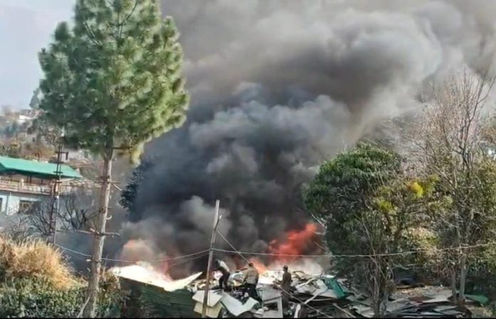 जोशीमठ के औली रोड स्थित आर्मी कैंप के भीतर अचानक स्टोर में आग लगने से इलाके में दहशत का माहौल बन गया। तेज लपटों और घने धुएं के कारण आसपास के लोग सहम गए।