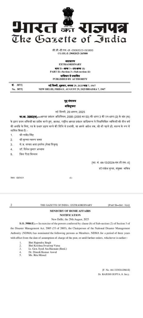 चकराता। राष्ट्रीय आपदा प्रबंधन प्राधिकरण (NDMA) में विभागाध्यक्ष के पद पर कार्यरत राजेंद्र सिंह तोमर को केंद्र सरकार ने तीन साल का सेवा विस्तार दिया है। अब वे सितंबर 2028 तक इस महत्वपूर्ण पद पर कार्यरत रहेंगे।