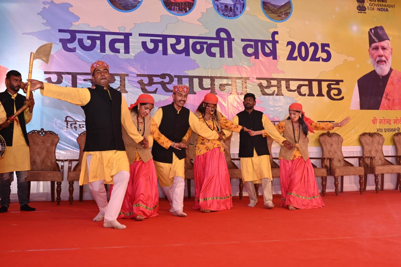 रजत जयंती सप्ताह के प्रथम दिवस पर जिले के विभिन्न विद्यालयों के छात्र-छात्राओं तथा सूचना एवं लोक सम्पर्क विभाग के सांस्कृतिक दलों ने देवभूमि उत्तराखंड की लोकसंस्कृति की मनमोहक प्रस्तुतियां दी। पारंपरिक लोकनृत्य,लोकगीत एवं वाद्य प्रस्तुतियों ने कार्यक्रम को सराबोर कर दिया और उपस्थित जनसमूह को झूमने पर विवश कर दिया।